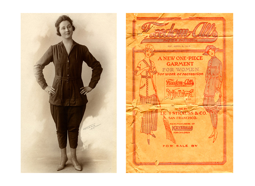 Más tarde, en 1935, se popularizó el jean entre las mujeres gracias a la marca Lady Levi’s, que desde el 22 de octubre de 1918 estaba haciendo historia, cuando Levi Strauss & Co obtuvo la marca Freedom-Alls, que incluía la primera prenda diseñada específicamente para mujeres por la compañía, un traje compuesto por una chaqueta con cinturón y pantalones harem abrochados cerca del tobillo para poder utilizarlos con botas, prenda no sólo propuesta para tareas domésticas sino también para hacer deporte y actividades al aire libre, algo poco común para ese entonces.